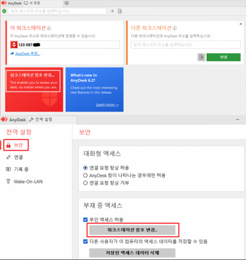 4. 애니데스크 접속 비밀번호 변경 어떻게 하나요?